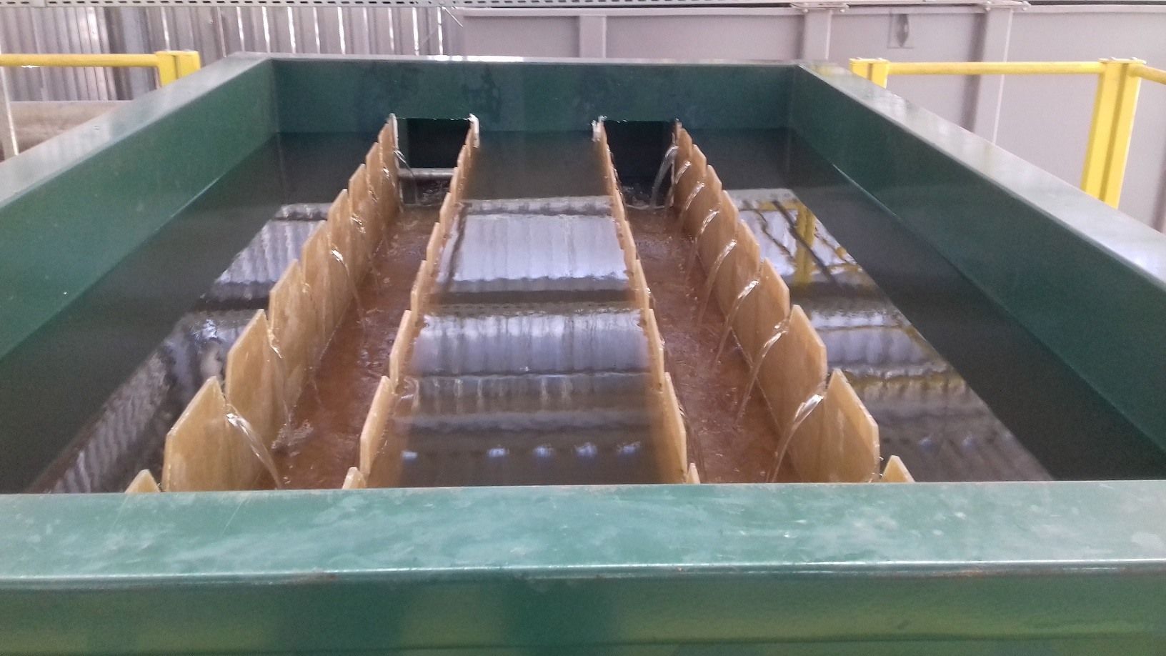 O clarificador de lamelas AgE é um clarificador de plataforma compacto e inclinado, com partículas coloidais e em suspensão mais elevadas, utilizado para clarificação de água e águas residuais, através do fornecimento de várias placas inclinadas que estabelecem uma câmara de sedimentação distinta entre as placas adjacentes. A água floculada flui para a lamela, próxima à base das placas. Os sólidos são depositados na superfície das placas quando a água sobe. Os sólidos ainda caem na tremonha, nas superfícies das placas. O clarificador de lamelas proporciona um meio de clarificação de água com grande economia de área superficial. (Até 90%)