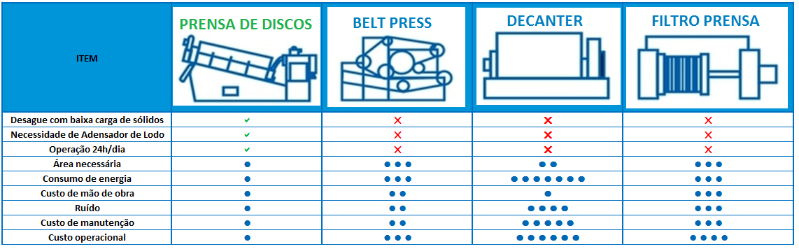 ► Deságue de lodos biológicos – sem necessidade de adensamento para teores de sólidos >= 0,2%;