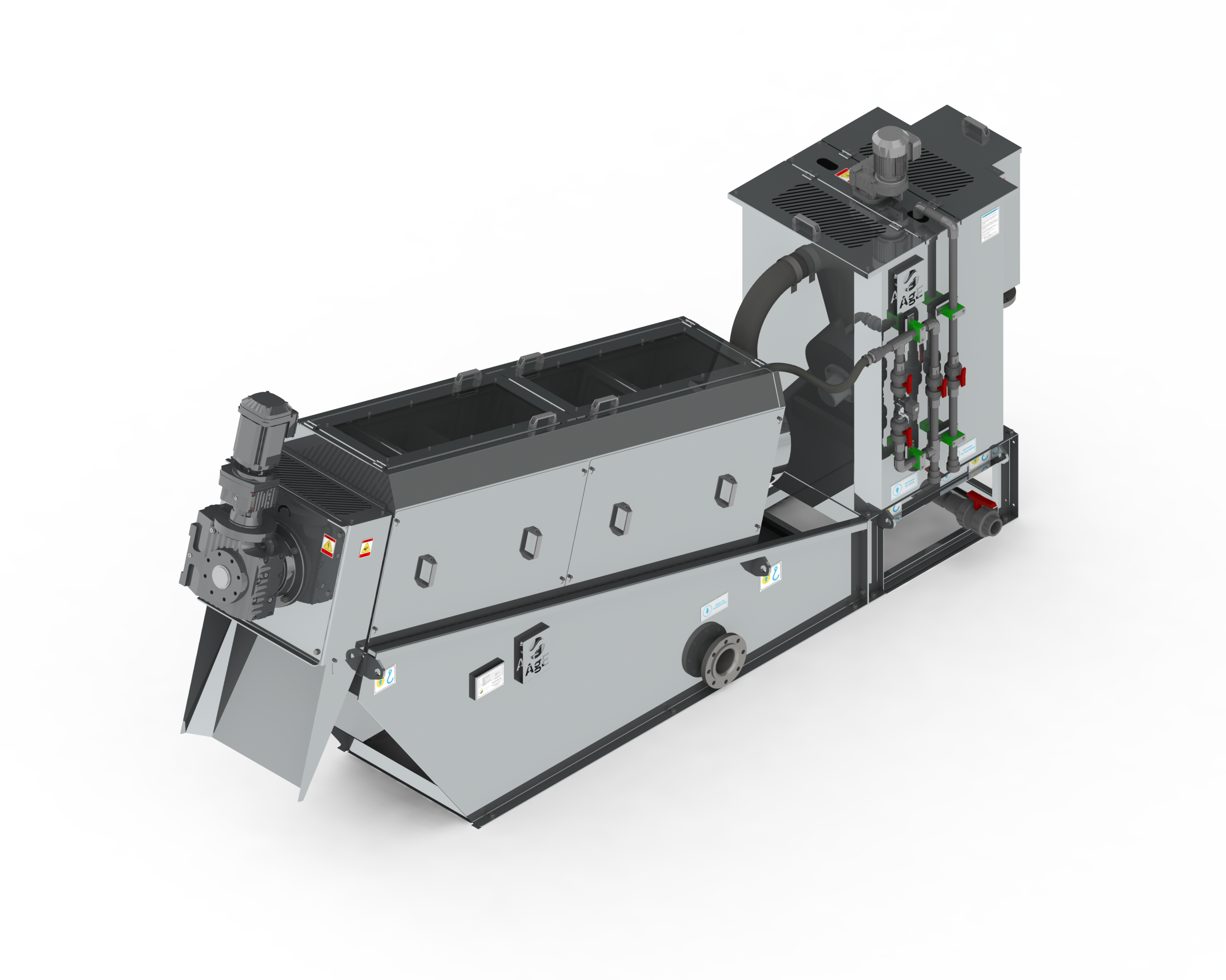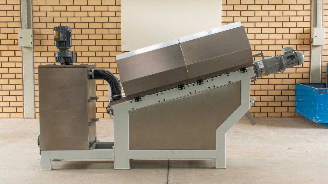 A Prensa de Discos Móveis AgE é um desidratador de lodo tipo de parafuso muito mais avançado, em muitos aspectos, do que Belt Press, Decanters Centrífugas, filtros prensa, etc. Não entope nem embucha, possui ampla gama de aplicações, baixo consumo de energia, operação simples e manutenção fácil e barata.